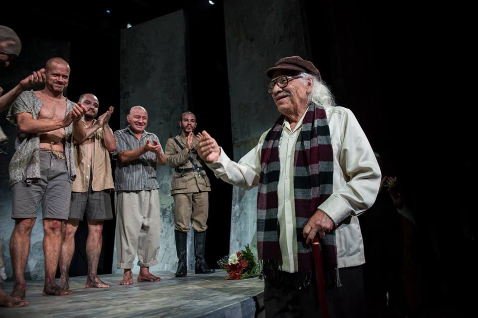 Foto de José León Sánchez con los actores al finalizar el estreno el pasado 1ero de setiembre. Foto extraída del sitio del teatro Espressivo