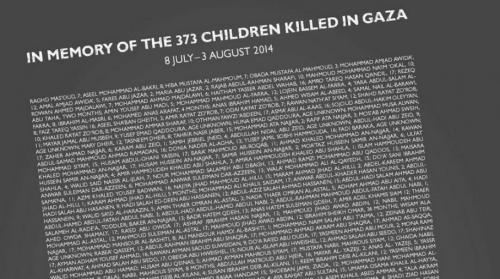 Imagen de bombardeos israelíes en Gaza extraída de nota de France24 titulada "Israël bombarde massivement Gaza, l'ONU appelle à éviter la guerre", edición del 20/07/2014 y nota mortuaria publicada por la ONG Save the Children en el Reino Unido en agosto del 2014 con relación a la muerte de 373 niños palestinos en cuatro semanas de mortífera ofensiva israelí