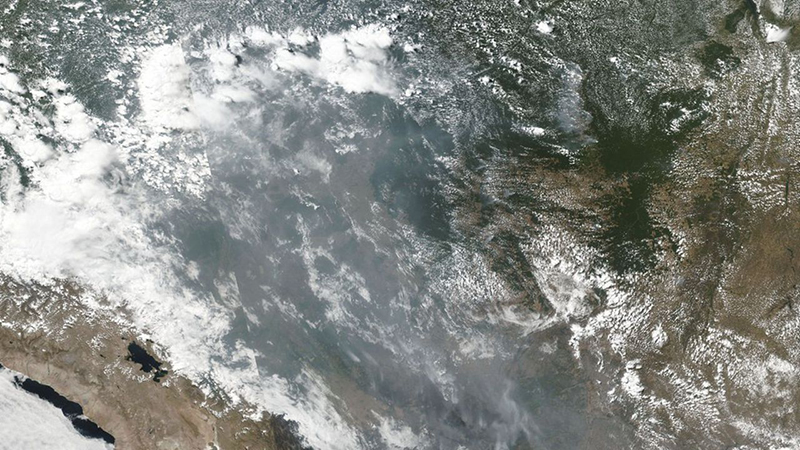 Foto satelital tomada del artículo de prensa titulado "Incendies en Amazonie : « nous risquons d'assister à une savanisation de l'Amazonie »