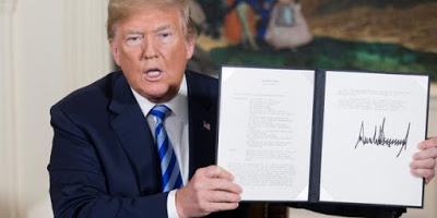El actual ocupante de la Casa Blanca ha anunciado el pasado 8 de mayo que ha ordenado retirar a Estados Unidos de este acuerdo y sancionar a Irán por diversos motivos (véase texto de su Memorandum). El anuncio del Presidente de Estados Unidos fue inmediatamente saludado por Israel (véase nota de Haaretz del mismo 8 de mayo), mientras que fue repudiado por el resto de la comunidad internacional.