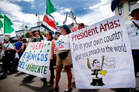 Foto de marcha en san José en contra del proyecto minero de Crucitas en Costa Rica referenciada en este artículo del Tico Times.